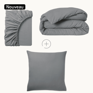 Drap housse élastiqué, taie à rabat 20 cm et housse zippée, en matière douce effet froissé pour un lit net sans repassage. Entretien facile, gain de temps assuré.