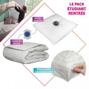 Le pack est complété par un oreiller ferme eco et une couette eco blanche, répondant aux exigences des étudiants.